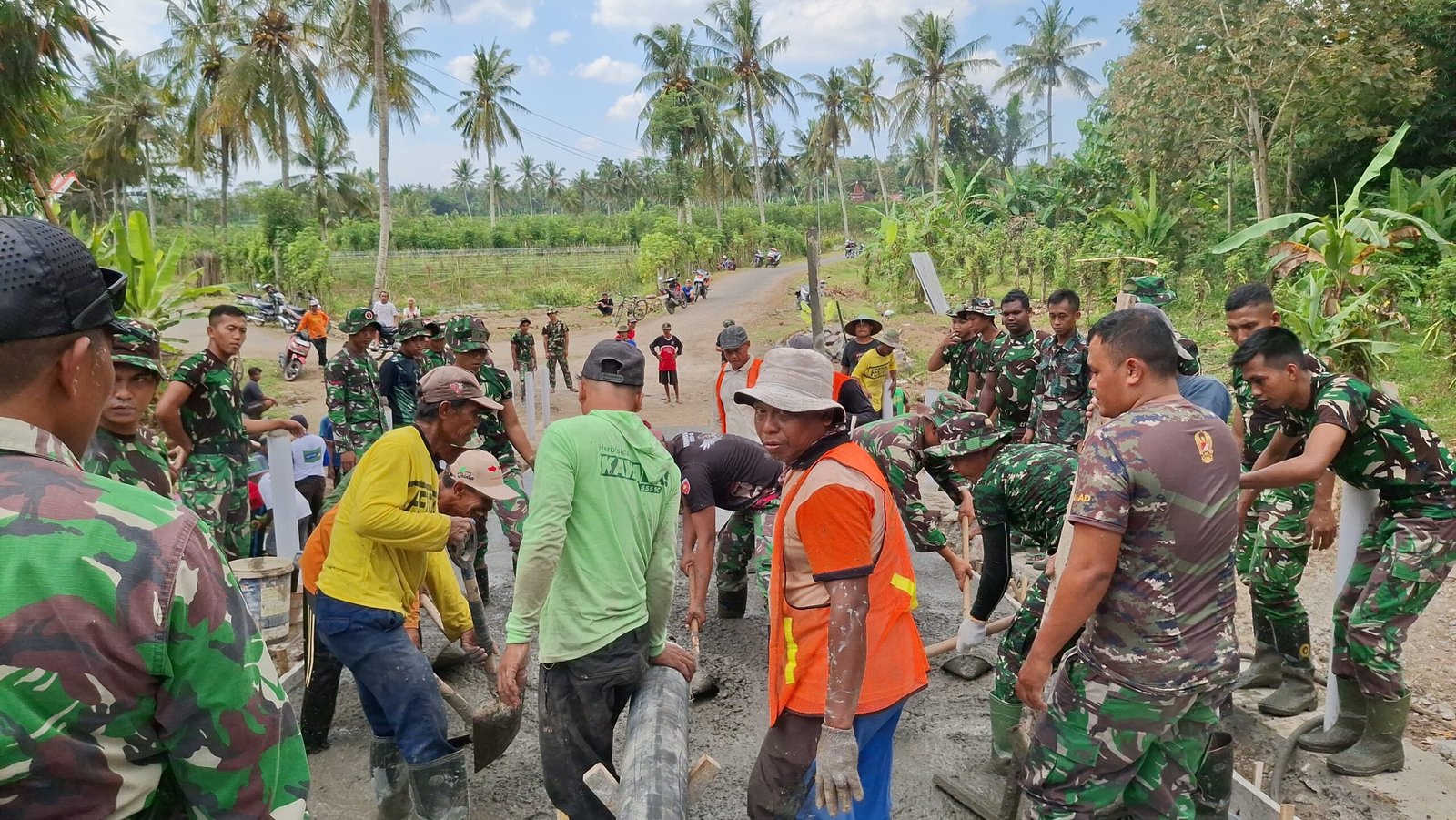 Selain mengerahkan personel TNI, pengerjaan jembatan ini juga melibatkan partisipasi aktif warga setempat. Gotong royong antara Satgas TMMD dan masyarakat menjadi wujud nyata kemanunggalan TNI dengan rakyat, sekaligus mempercepat proses pembangunan. Dengan kerja sama yang solid, pengecoran jembatan berjalan lancar meskipun medan cukup menantang.